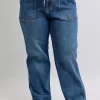 Plus Size High Waist Drawstring Wide Leg Jeans – Medium