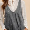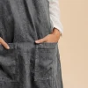 V-Neck Adjustable Strap Denim Overall Dress With Pockets – Charcoal