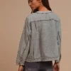 Mineral Washed Checkered Round Neck Denim Top – Denim