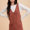 V-Neck Adjustable Strap Denim Overall Dress With Pockets – Rust