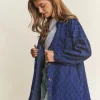 Rhombus Stitched Button Up Denim Shacket – Dark Denim