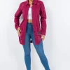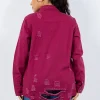 Distressed Button Up Long Sleeve Denim Jacket – Deep Purple