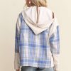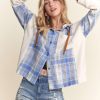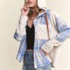 Button Down Plaid Hoodie Shacket – Blue/Ivory
