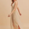 Side Slit Round Neck Sleeveless Tank Dress – Oatmeal