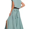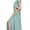 Heavy Woven Span Crop Tee & Skirt Set – Blue Grey