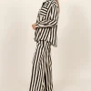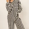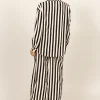 Make a bold fashion statement with this striped button-up set. The set includes a long-sleeve button-up shirt and matching wide-leg pants, both featuring striking vertical stripes that exude modern sophistication. The shirt comes with a classic collared neckline, buttoned cuffs, and front chest pockets, adding both functionality and style. The wide-leg pants offer a relaxed fit with a comfortable waistband, making them perfect for all-day wear. Whether you wear them together for a cohesive look or mix and match them with other pieces, this set is sure to elevate your wardrobe with its chic and elegant design.