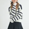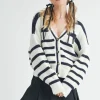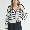 Striped V-Neck Button Down Cardigan – White/Navy