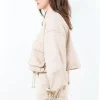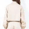 Full Size Drawstring Hem Cargo Pocket Cropped Worker Jacket Plus Size – Tan