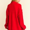 Button Up Dropped Shoulder Cardigan with Pockets – Red