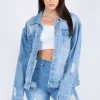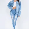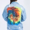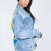 Full Size Painted Back Distressed Denim Jacket – Blue