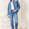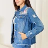 Leopard Floral Distressed Raw Hem Denim Jacket – Leopard