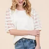 Full Size Lace Puff Sleeve Round Neck Top Plus Size – Cream