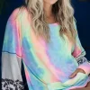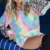The Tie Dye French Terry Pullover Top with Contrast detailing combines comfort with style for a trendy look. The tie-dye pattern adds a playful and colorful touch to the French terry fabric, making it a casual yet fashionable piece. The contrast detailing adds visual interest and helps highlight the tie-dye design. This pullover top is perfect for a relaxed and laid-back outfit with a pop of personality. Pair it with your favorite jeans or leggings for a cozy and chic look. The combination of tie-dye and contrast detailing creates a modern and stylish top that is perfect for casual occasions.