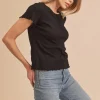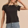 Round Neck Lettuce Hem Short Sleeve T-Shirt – Black