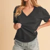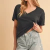 The V-neck short sleeve T-shirt is a basic and versatile top that is a wardrobe essential. The V-neck adds a flattering touch to the neckline, while the short sleeves provide comfort and ease of movement. This classic piece can be styled in a variety of ways and is perfect for creating casual and effortless outfits for everyday wear.