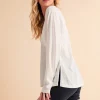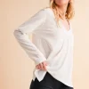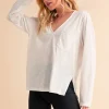 V-Neck Long Sleeve Top – White