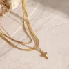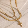 18K Gold-Plated Three-Layered Cross Necklace – Gold