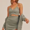 3 Pieces Sweater Set with Crop Cami, Mini Skirt, Cardigan – Dusty Olive