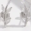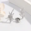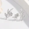 925 Sterling Silver Zircon Leaf Shape Earrings – Silver