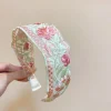Acrylic Flower Embroidered Headband – Light Green