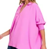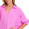 Airflow Collar Tee with Smocked Sleeve Band Top – Bright Mauve