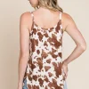 The animal print cami is a trendy and statement-making piece for your wardrobe. With a bold animal print design, this cami adds a touch of fierceness to any outfit. Perfect for layering under a jacket or cardigan or wearing on its own for a stand-out look. Pair it with jeans or a skirt for a chic and stylish ensemble that showcases your wild side.