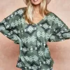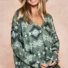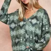Aztec Print Brushed Out Stitching Detailed Top – Olive Combo