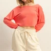 Stay on-trend with this Boat Neck Long Sleeve Cropped Top. The boat neck design adds a touch of sophistication, while the long sleeves provide coverage and warmth. The cropped length gives a modern and stylish twist to this classic silhouette. Pair it with high-waisted bottoms for a chic and put-together look.