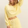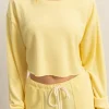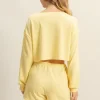 Boat Neck Long Sleeve Cropped Top – Creamy Yellow