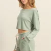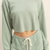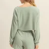 Boat Neck Long Sleeve Cropped Top – Sage Green