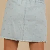 Bow Printed Casual Denim Mini Skirt – Lt Indigo