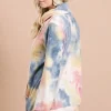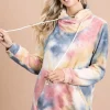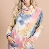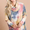 The Brushed Tie Dye Overlapped Turtleneck Top is a cozy and stylish piece that combines the trendy tie-dye pattern with a unique overlapped turtleneck design. The brushed fabric offers warmth and comfort, making it perfect for cooler weather. The tie-dye print adds a fun and colorful element to the top, while the overlapped turtleneck detail adds a modern and chic touch. This top can be paired with jeans or leggings for a casual and fashionable look. The combination of the tie-dye pattern and overlapped turtleneck creates a statement piece that is sure to stand out.