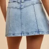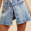 Button Detail Stretch Denim Wrap Mini Skort – Medium Washed Denim