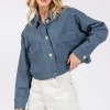 Button Down Cropped Denim Jacket with Patch Pockets – French Blue