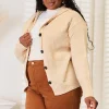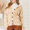 Button-Down Long Sleeve Hooded Sweater – Tan
