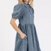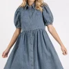 The Button Down Puff Sleeve Denim Dress is a fashionable and versatile piece that combines the classic look of denim with trendy puff sleeves and a button-down front. This dress offers a blend of casual and chic style, making it suitable for a variety of occasions. The puff sleeves add a touch of drama and femininity, while the button-down design allows for easy wear and a flattering fit.