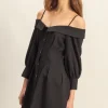 Button Down Spaghetti Strap Mini Dress with Pockets – Black