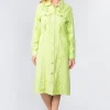 Button Up Distressed Denim Dress – Lime