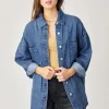 A Button Up Drop Shoulder Denim Shacket is a hybrid garment that combines the style of a shirt and a jacket. It typically features a button-up front like a shirt, along with drop shoulders, which are seams that sit below the natural shoulder line for a relaxed and slightly oversized fit. This shacket is made of denim fabric, providing a casual and versatile look that can be worn as a lightweight jacket or a shirt. It’s a trendy and fashionable piece that can be layered over outfits for added style and warmth.