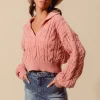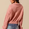Cable Knit Deep V Neck Crop Swetaer Top – Mauve