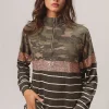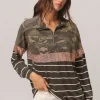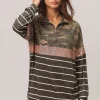 Camouflage French Terry Knit Top is a fashionable and comfortable top made from French terry knit fabric featuring a camouflage print. This top combines the trendy camouflage pattern with the cozy and soft texture of French terry for a stylish and casual look. Perfect for adding an edgy vibe to your everyday outfit, this top is versatile and easy to pair with different bottoms for a chic and on-trend style.