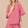 Ces Femme Checkered Round Neck Top and Shorts Set – Red