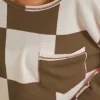 Checker Printed Hacci Top With Front Pocket – Taupe