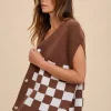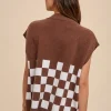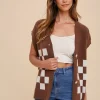 Checkered Button Down Short Sleeve Cardigan – Dark Brown