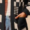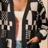 Checkered Open Front Cardigan with Pockets – Black/Oatmeal