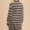 Checkered & Striped Open Front Long Sleeve Cardigan – Dark Gray