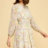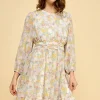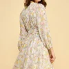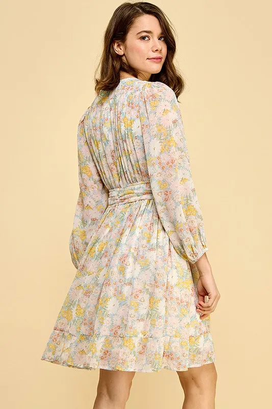 Chiffon Floral Print Belted Dress with Back Zipper – Blue Floral