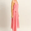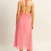 Chiffon Halter Asymmetrical Hem Dress – Rose