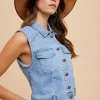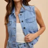 The Collared Neck Button Down Denim Vest is a versatile and trendy layering piece that adds a touch of casual-cool to any outfit. This vest features a classic collar neckline for a timeless look. The button-down front closure provides a polished and adjustable fit. Made from denim fabric, this vest offers a durable and structured silhouette that is perfect for layering over tops or dresses. Whether worn open or buttoned up, this denim vest adds a touch of edge and style to your ensemble. Perfect for creating laid-back and stylish outfits, the Collared Neck Button Down Denim Vest is a versatile wardrobe essential.