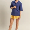 Collared Neck Button Down Waffle Shirt – Dusty Indigo